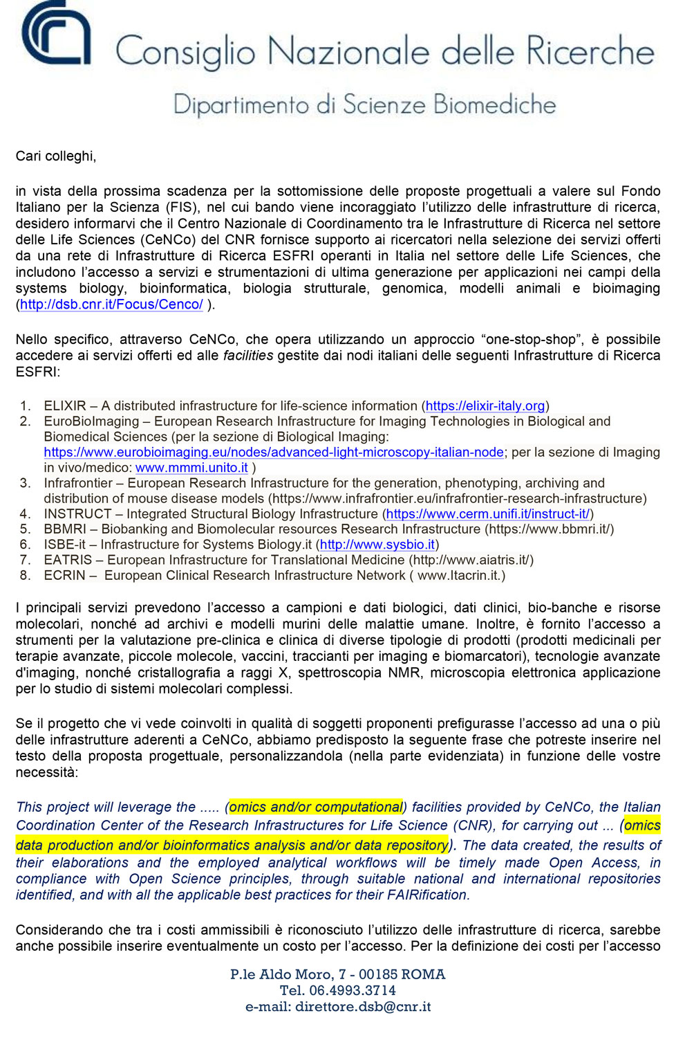 Fondo italiano per la scienza (FIS). CNR: opportunità per le Scienze della vita 25 dicembre 2021La lettera della Dott.ssa Daniela Corda a nome del Gruppo di Lavoro CeNCoScarica la lettera.